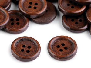 Dřevěné čtyřdírkové knoflíky jsou vhodné k dekoračním účelům.