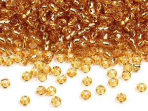Skleněné korálky rokajl jsou jednobarevné, neprůhledné, s perleťovým efektem.