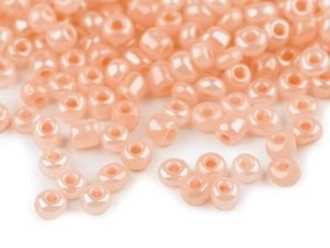 Skleněné korálky rokajl jsou jednobarevné, neprůhledné, s perleťovým efektem.