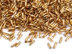 Skleněné sekané korálky rokajl se stříbrným průtahem se efektně lesknou.