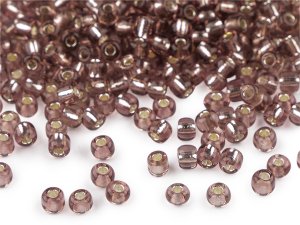 Skleněné korálky rokajl jsou jednobarevné, neprůhledné, s perleťovým efektem.