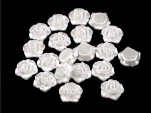 Efektní plastové korálky ve tvaru květu růže mají perleťový lesk a nízkou hmotnost.