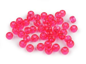 Plastové korálky s velkým průvlekem mají vysoký lesk, který věrně imituje opravdový kov.