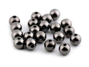 Výrazné plastové korálky ve tvaru kuličky s metalickou, vysoce lesklou úpravou na povrchu.
