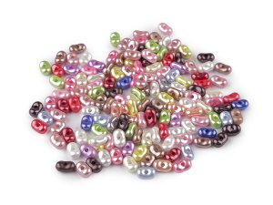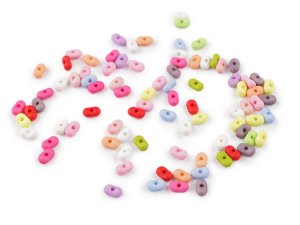 Malé plastové korálky mají zajímavý tvar arašídů.