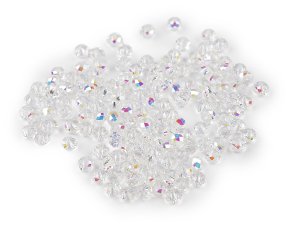 Skleněné broušené korálky ohňovky s AB efektem mají jedinečný lesk a jemný vzhled.