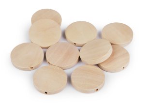 Dřevěné přírodní korálky ve tvaru kulaté placičky nadchnou všechny kreativce.