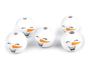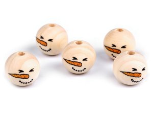 Dřevěné korálky s malovaným obličejem sněhuláka.