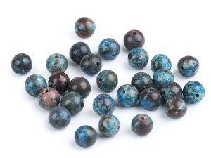 [Syntetické korálky chryzokolu] jsou oblíbené především šperkaři pro svou zajímavou kresbu a barvu.