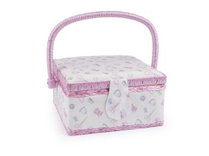 Košík na šicí potřeby o rozměrech 18 x 28 cm, výšce 15 cm nabízíme v různých barevných i vzorových variantách.