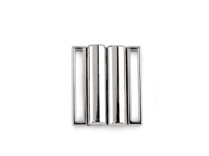 Kovové zapínání se skládá ze dvou dílů a zapnete ho vsunutím jednoho dílu mezi druhý.