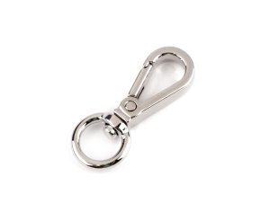 Malá karabina ve tvaru polokroužku vám poslouží na připevnění přívěsků ke kabelce, batohu či k tašce apod.