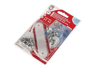 Stiskací nerezavějící knoflíky jsou určeny ke spojování středně silných látek [o tloušťce 0,5 - 1,5 mm].