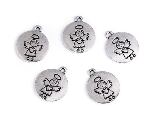 Kulatý kovový přívěsek s andělíčkem má mnohostranné využití.