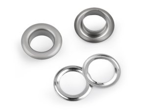 Kovová průchodka slouží k pohodlnému provlečení šňůry nebo gumy textilem.