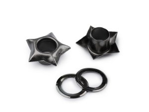 Kovová průchodka slouží k pohodlnému provlečení šňůry nebo gumy textilem.
