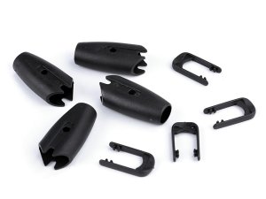 Plastová spona neboli trojzubec má mírně prohnutý tvar a díky tomu skvěle poslouží na výrobu outdoorových náramků spletených ze šňůr nebo ozdobných náramků ze stuh.