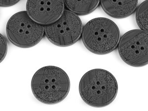 Čtyřdírkové knoflíky mají z části laserem vygravírovaný povrch.