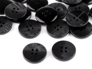 Efektní čtyřdírkové knoflíky vyniknou na košilích, sakách, bundách i svetrech. Část knoflíku je designově šrafovaná.
