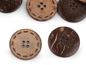 Kokosové knoflíky s reliéfem štepování působí exoticky.