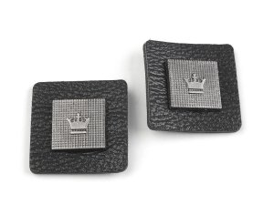 Dekorační aplikaci čtvercového tvaru zdobí znak koruny.