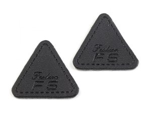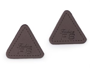 Ozdoba na oděvy trojúhelníkovitého tvaru je vyrobena z eko kůže.