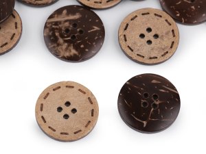 Dvoudírkové knoflíky jsou vyrobené z exotického kokosu.