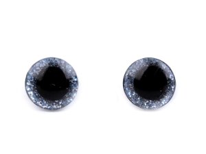 Polokulaté oči s glitrovou duhovkou se krásně třpytí.