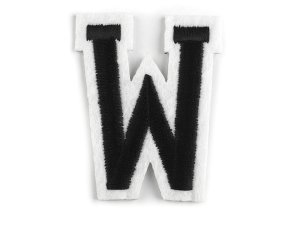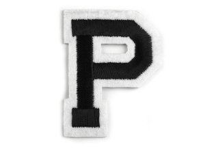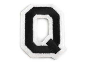 Díky nažehlovačkám s písmeny si můžete sestavit svůj vlastní originální nápis. [Písmeno má černou středovou část vyšívanou.] [Nažehlovačkami můžete oživit oblečení.