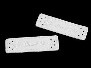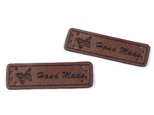 Cedulku z eko kůže oválného tvaru zdobí jednostranný nápis "hand made".
