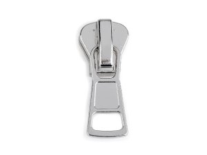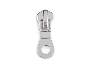 Kovový jezdec s táhlem v podobě kroužku je určený ke spirálovým zipům v metráži, které u nás najdete pod kódem 790304, 800963, [750994, 750503, 790305].