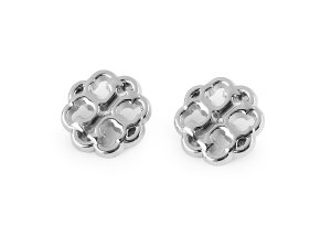 Kovové knoflíky čtyřlístky se úchvatně třpytí díky broušeným kamínkům, kterými jsou osázené.