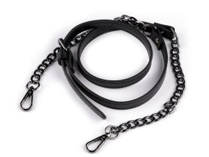 Koženkový popruh kombinovaný s řetízkem elegantně vynikne na kabelce.