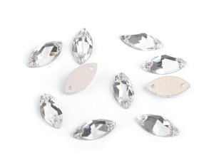Skleněné kamínky ve tvaru navety mají precizní výbrus, díky kterému se efektně třpytí.