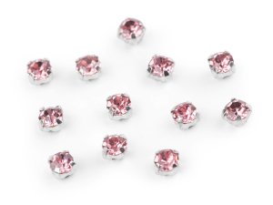 Skleněné našívací kameny v kotlíku. Čtvercové kovové lůžko se čtyřmi otvory umožňuje snadné našívání.