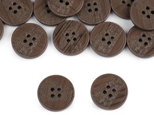 Čtyřdírkové knoflíky mají z části laserem vygravírovaný povrch.