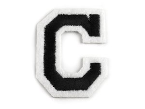 Díky nažehlovačkám s písmeny si můžete sestavit svůj vlastní originální nápis. [Písmeno má černou středovou část vyšívanou.] [Nažehlovačkami můžete oživit oblečení.