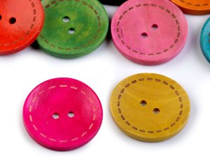 Barevný mix dřevěných dekoračních knoflíků s reliéfem štepování můžete použít ke zdobení foto rámečků, krabiček, výrobě originálních obrazů apod.