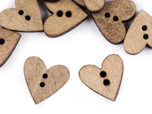 Dřevěné knoflíky ve tvaru srdce využijete k dekoračním účelům, převážně u scrapbookingu.