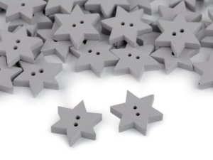 Dřevěné knoflíky ve tvaru hvězdy využijete ve scrapbookingu.