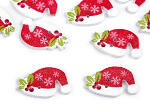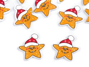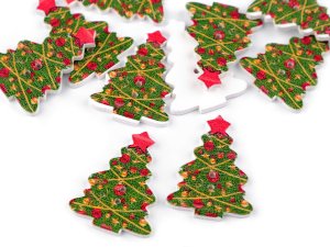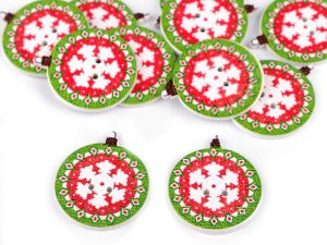 Dřevěné dekorační knoflíky s vánočními motivy.