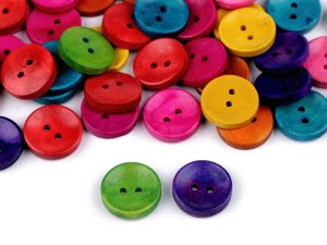 Mix barevných dřevěných knoflíků je určený k dekoračním účelům.
