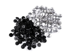 Elegantní knoflíky jsou potažené sametem a v jejich středu je kovová ozdoba.