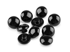 Plastové knoflíky mají spodní přišívání a polokulatou hlavičku.