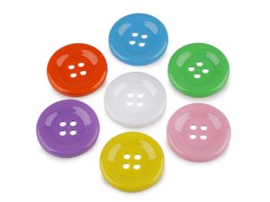 Plastové knoflíky, které jsou z obou stran hladké, využijete k našití nejen na oděvy, ale také na doplňky (klobouky, rukavice, tašky apod.).