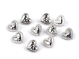 Kovové knoflíky ve tvaru srdce jsou zajímavé tepaným povrchem.