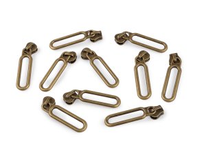 Kovový jezdec je určený ke kostěným zipům No 5 v metráži, které u nás najdete pod kódy 090847, 790837, [750994, 740911, 750503].