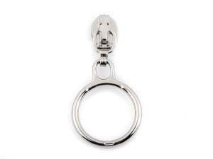 Kovový jezdec s táhlem v podobě kroužku je určený ke spirálovým zipům v metráži, které u nás najdete pod kódem 790304, 800963, 750994, 750503, 790305.
