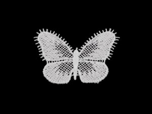 Krajkovou aplikaci motýla využijete na zdobení oděvů např. halenek, šatů, různých kloboučků, tašek apod.