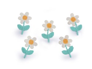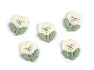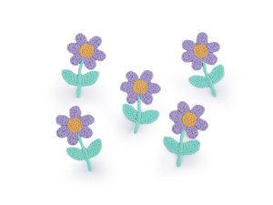 Aplikaci květiny macešky zdobí struktura výšivky.